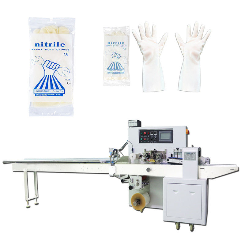 स्वचालित सर्वो मोटर फ्लो पैकिंग मशीन 10PC नाइट्राइल दस्ताने लपेटने की मशीन